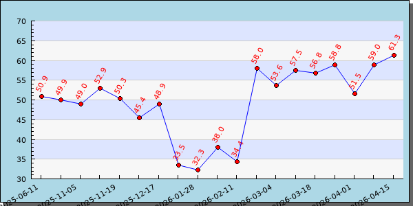 | 聚丙烯下游行业平均开工率-周 | 2025-12-05 | 53.93百分比 |