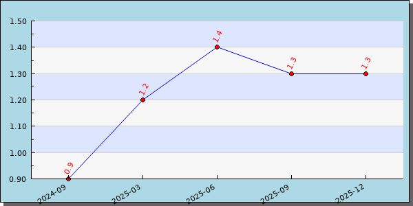 | 欧元区季度GDP同比初值 | 2025-09 | 1.3百分比 | 欧盟统计局 |