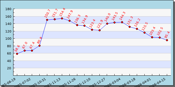 | 中国甲醇港口库存总量-周 | 2026-04-08 | 102.55万吨 | |