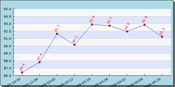 | 国内甲醇装置产能利用率-周 | 2026-04-02 | 91.96百分比 |
