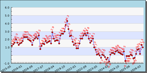| CPI同比 | 2026-02 | 1.3百分比 | |