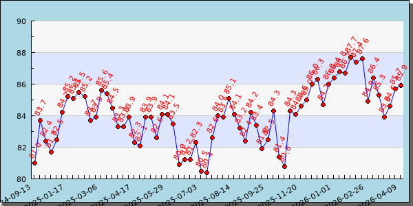 | 中国20万吨及以上烧碱样本企业产能平均利用率 | 2026-04-09 | 85.9百分比 | 隆众资讯 |