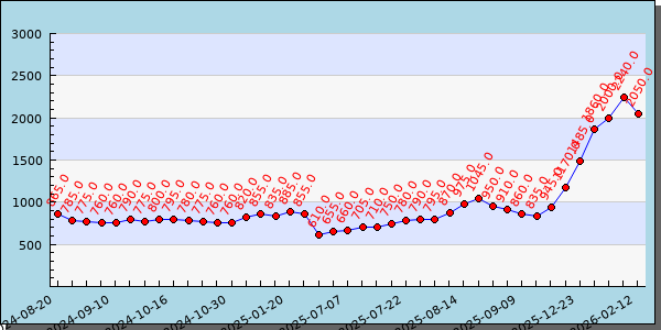 | 锂辉石精矿远期现货价格-澳大利亚5% | 2026-02-12 | 2050美元 | |