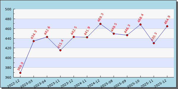 | 中国液化石油气产量-月 | 2025-12 | 464.9万吨 | 国家统计局 |