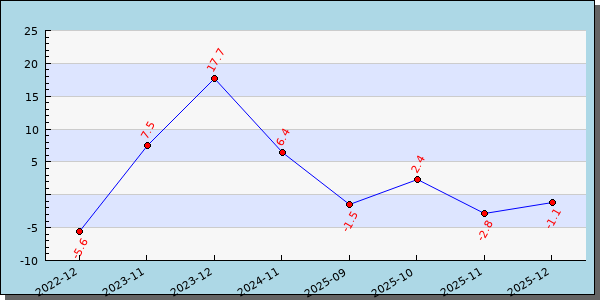 | 中国液化石油气产量-月同比 | 2025-11 | -2.8百分比 | 国家统计局 |